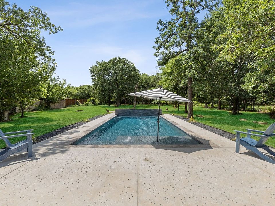 MULTIPLE OFFERS RECEIVED. OFFER DEADLINE is Monday, May 22 at 5pm. Fully renovated Modern Farmhouse home on 1 acre wooded lot in AUBREY ISD with gunite, saltwater pool! This open-concept charmer has stunning engineered wood floors in main living areas as well as master bedroom. Kitchen has oversized breakfast bar, open floating shelves, walk-in pantry, SS appliances, eat-in kitchen and gorgeous granite countertops! Living room is open to kitchen and with recently added propane, brick fireplace. The private master has ensuite bath with freestanding tub, walk-in shower, TWO closets, double sink vanity, updated lighting, mirrors and flooring. Two bedrooms and updated full bathroom are opposite side of the master. Fourth bedroom is being used for an in-home business - does not have a closet but does have a perfect place to add one. BACKYARD OASIS with gunite, saltwater pool surrounded by trees and large, open patio with outdoor movie screen. Fruit trees, garden & shop with electricity!