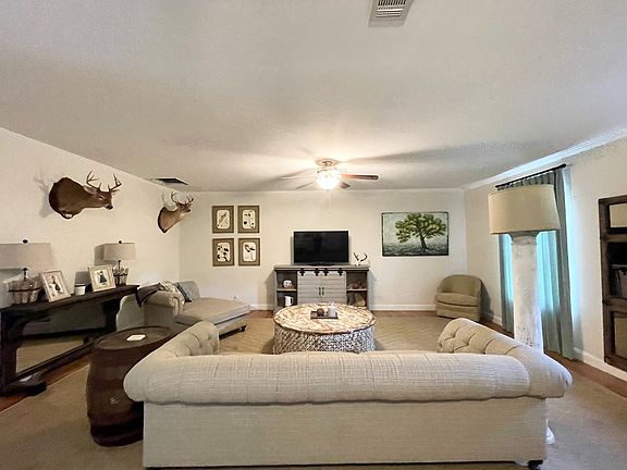 Very well built home with lots of character located in the country. 4 bedroom and 3 bath with lots of extra space and storage inside and out. Enjoy the potential extra income from the pecan trees, as well as low maintenance costs due to vinyl siding and metal roof. Also located on the property is a nice sized, wired metal workshop with parking for a boat or cars on both sides. Motivated Seller!
