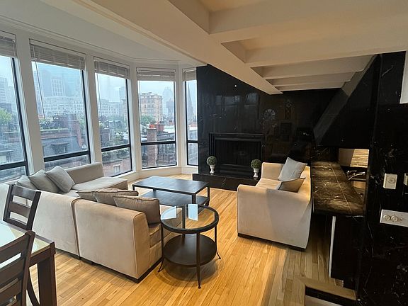 Large 2 bed plus office / 3 bathroom penthouse apartment for rent located near the corner of Arlington and Beacon Streets in Boston's Back Bay neighborhood. This duplex apartment features a modern kitchen with dishwasher and garbage disposal, gas range; and three full bathrooms. The unit features wood floors, large floor to ceiling windows, and a decorative fireplace in the living room. Bedrooms are located on the 2nd level of the apartment. Unit is very unique - must see in person. Tenants are responsible for electricity for heat, a/c, hot water, and power. No pets please.