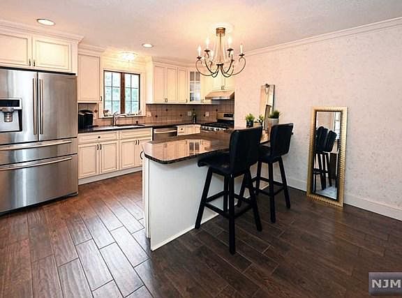 Immaculate, updated, 3 BR Cape, close to 17, 80, 46, 4, 208 & Parkway, in great neighborhood of desirable Rochelle Park! 1st flr features good size living rm w/wood burning fireplace, 2 BRs, the updated full bathrm, & the stunning Designer Kitchen w/new flrs, granite counters, island w/breakfast bar & modern stainless appliances! Also beautifully refinished hardwd flrs! 2nd flrs has a terrific BR w/built-in drawers, 2 LG closets, gorgeous new flooring, & attractive exposed beams! Plus a cedar closet! Also a fabulous, apartment-like finished bsmt w/large Rec Rm/Fam Rm plus a bonus Rm for Gym/Play Rm/Home Office or even possible 4th BR! Also plumbing for 2nd bathrm if desired! Great for extended family! All this plus professional Landscaping w/beautiful curb appeal, a wonderful backyard w/slate patio & new designer fence, for yrs of BBQs, gatherings & outdoor fun! Add the ornate moldings, newer furnace & hot water heater, 1 car garage, & you have a great place to call your new home!
