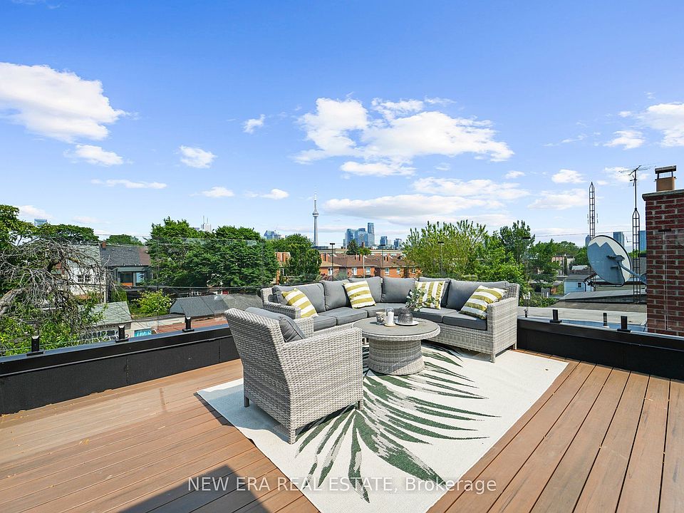 Stunning, Never-Occupied Semi in the heart of Trinity Bellwoods. Rebuilt from the foundation up, this exceptional semi-detached home offers modern luxury in one of Toronto's most sought-after neighbourhoods. Enjoy a legal rooftop patio with breathtaking CN Tower views and a beautifully finished 1-bedroom basement suite. The main level boasts a large wooden deck perfect for entertaining, premium finishes throughout and hardwood flooring. The chef's kitchen features quartz countertops and backsplash, high-end appliances, and custom cabinetry. With laneway access for rear parking and future garden suite potential, plus its unbeatable location steps to shops, restaurants, parks, and transit, this home blends style, comfort and investment opportunity,
