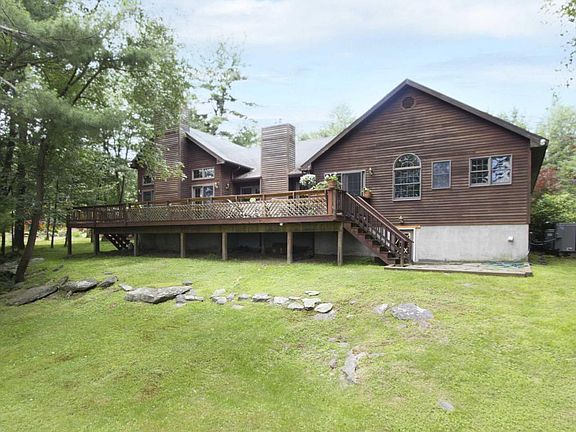 Knock Out Views, Knock Out House! Tucked away in Pike County sits this terrific 3+ bdrm, 3 bath home offering stunning views of Lake Wallenpaupack. A modern, open floor plan is built around the views featuring 2 floor to ceiling stone fireplaces, office, bright & airy kitchen overlooking the living room & a master suite walks out onto the 700+ sqft deck! Lower level family room, attached 2 car garage, paved circular driveway, beautiful landscaping, private back yard & boatslip on Wallenpaupack!