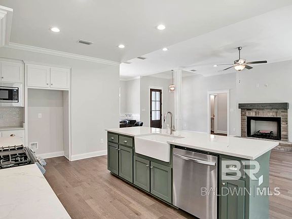 Welcome to 113 Bennington Ave in the highly sought-after Old Battles Village of Fairhope. The ELM floorplan by TRULAND HOMES is waiting for you in sought after Jubilee Farms. Discover the charm and convenience of Jubilee Farms, a picturesque master-planned community in Fairhope, AL. A space for every imaginable use, this house exudes luxury and comfort. Enter through the heavy-wood door into the foyer. Open air layout allows formal dining room to open to family/great room area and continuously flow into the chef’s kitchen. Gourmet kitchen boasts beautiful painted cabinetry, gorgeous granite counters, large work island, farmhouse sink, gas cooktop stainless steel dishwasher, and built-in wall mounted oven and microwave. The bar overhang is perfect for entertaining and can easily seat guests with chairs or barstools. Convenient breakfast nook off the kitchen includes access to the large rear covered patio. Owner's quarters boast room for heavy furniture and hails a spa-like primary bath. Enter the lavish primary bathroom with a large separate tub, double vanities, seamless glass & tiled shower, linen closet and separate water closet. Enjoy a huge primary closet, utilized by sturdy wood shelving and windows for plenty of light. Floorplan showcases true “split” layout as two guest bedrooms and jack-and-jill style bath are on the opposing side of the home. Large Laundry room and convenient “drop-zone” by door leading to garage includes a custom mud-bench for backpacks and coats. Retreat upstairs to a large 4th bedroom with walk-in closet and full bath. Includes tankless water heater! GOLD FORTIFIED, PWSC home warranty, Smart home Package and Transferable Termite Bond are just a few of the amenities that tie this amazing house together! PICTURES ARE OF SIMILAR PLAN AND MAY NOT BE SAME COLOR AND OPTIONS OF SUBJECTPROPERTY. To be completed Jan 2025. Buyer's agent to verify all important information. Buyer to verify all information during due diligence.