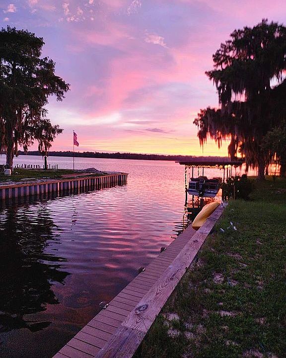 Brick Canal Home with Amazing View! This lovely two story home on a deep water canal to the St Johns river canal is the perfect place. This location is one of the best in the bass fishing capitol. Close proximity to Silver Glen and Salt Springs Run plus a short boat ride to restaurants and entertainment on the water. Home features include an open concept with fireplace, 2 bedrooms and 1 bath downstairs as well as kitchen/dining area and screened porch with a beautiful view of the river. Upstairs is the Master Suite and master bath, but if stairs are an issue, this home is equipped with a chair lift to the second floor. Outside the home you have a long driveway with a ramp that leads to the side entrance. A new well has been installed with filtration system. There is a 50"+ feet dock for your boat. New carpet in bedrooms and laminate vinyl floor in Livingroom and paint has been done recently as well. If interested furniture can be included for additional cost.