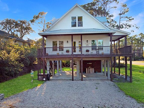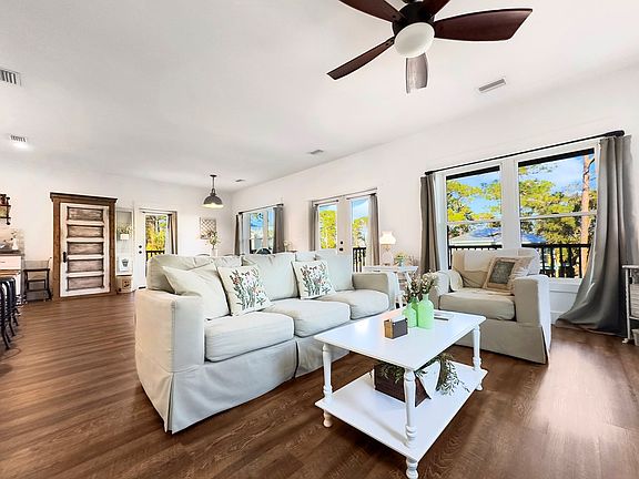 Discover your perfect coastal getaway in the charming Boardwalk subdivision! This beautifully designed 3-bedroom, 2.5-bath home is thoughtfully crafted with attention to detail, from its elegant dcor to its high-quality finishes. The soothing coastal color palette enhances the open-concept layout, creating a bright and airy space that instantly transports you to the beach. Custom craftsmanship is evident throughout, from the stylish vanities to the carefully selected design elements that make this home truly special. Unwind on the wraparound porch, where you can sip your morning coffee while taking in the peaceful views of St. Joe Bay. Inside, the spacious living, kitchen, and dining areas flow seamlessly together, making entertaining effortless. The main-floor master suite offers a private retreat with an ensuite bath, walk-in closet, and direct porch access. Upstairs, two additional bedrooms and a full bath provide ample space for guests. Beneath the home, an abundance of storage ensures plenty of room for all your beach gear. A charming pergola invites you to enjoy an afternoon picnic in the cool coastal breezes, while a cozy firepit area is perfect for unwinding under the stars. With Salinas Park just a short walk away, you can enjoy bayfront strolls or a friendly game of pickleball. The Boardwalk community also features a seaside pool, a gazebo, and scenic boardwalks leading directly to the beach. Every detail of this home is designed for comfort, style, and coastal living at its finest.