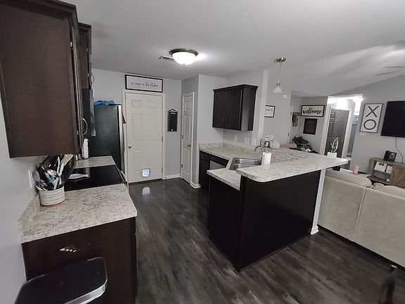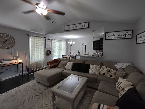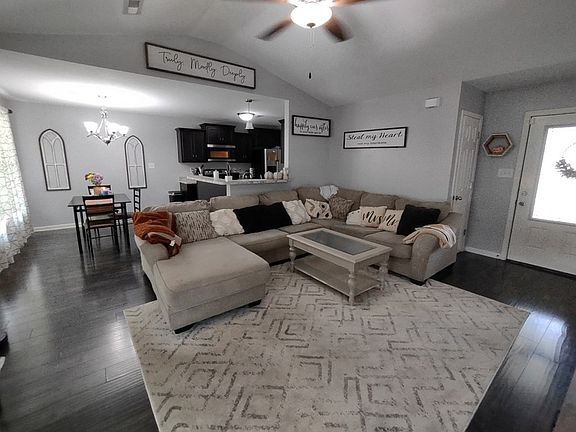Nice one level 3 bedrooms 2 bathrooms, open floor plan. Great room open to kitchen and dining area. Primary bedroom features a large walk-in closet and bath with soaking garden tub and separate shower. Two nice size additional bedrooms. Concrete patio and on a large lot (goes beyond current fence) that backs up to farmland.