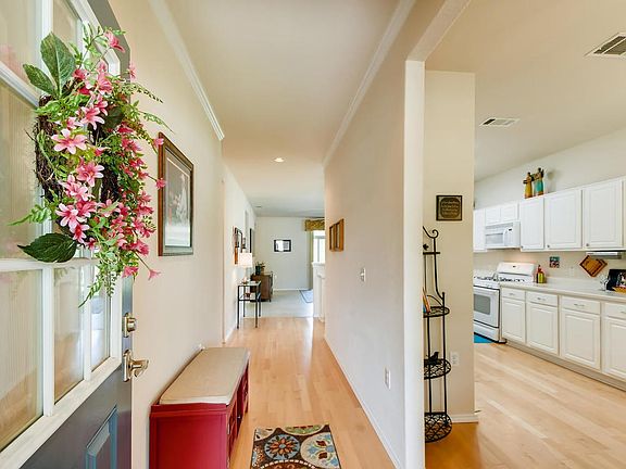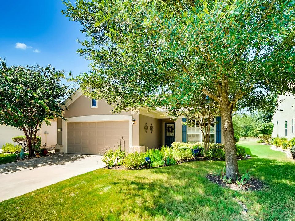 Immaculate! Bayberry home offers 3 bed/2 bath backs to a large greenbelt AND golf course views! White Wing's 5th tee visible from patio. Very open & bright feel, all tile & wood flooring. Shows beautifully with 9' ceilings & plantation shutters. Large master closet. Ext garage with workbench area & storage cabinets. Has a water softener, and a security system. Washer/dryer, refrigerator, & BBQ grill convey. Roof replaced 2013. New water heater in 2019. Year-round lawn care is included in the annual dues.