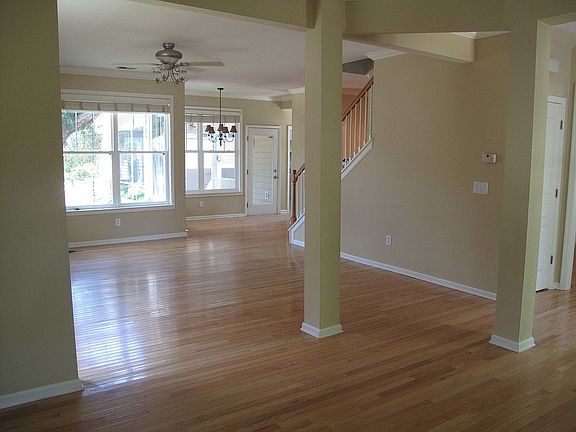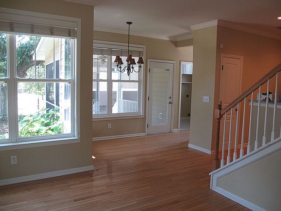 Charming 4 bedroom, 3 ½ bath home located in Daniel Island's Etiwan Park neighborhood. Floor plan includes a living room with gas fireplace, formal dining room, kitchen, office /den, powder room and laundry room downstairs. Kitchen has granite counter tops, gas stove and stainless steel appliances. Office/Den separated from living area by frosted glass custom shutters. 3 bedrooms upstairs with hallway full bath. Master suite on second level with master bath boasting double vanities, a large jetted tub and an enclosed shower. All hardwood floors throughout which is rare in this neighborhood. Plantation shutters on every window in main house. Wonderful Full Room Over Garage (FROG) guest suite with a full bath, 2 beds, a living area, eating area with table and 4 chairs, air conditioning and heating, and full kitchen with full sized refrigerator, gas stove, microwave and garbage disposal. Detached two-car garage with air conditioning and heat. Unique location backing up to a large pond, great for fishing. A full front porch and rear screened in porch with private fenced-in backyard are ideal venues to relax and enjoy the beauty of the island. Patio and outdoor shower. Great neighborhood with parks, pools, and boat landing access. Pictures were taken prior to house being rented 3 years ago. Currently, the home is being rented, but will be vacant at the end of February.