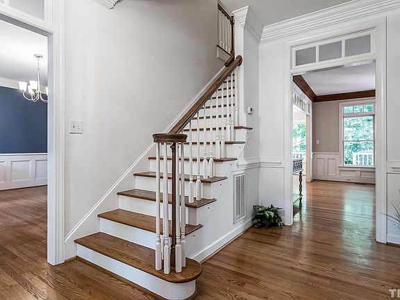 Regal Custom Home on .54 Acre Lot in Cary! Abundant Natural Light, Hardwood Floors throughout, Extensive Millwork through 1st Floor, Formal Dining Rm, Office, 1st Floor Bedroom w/En-suite Bath. Family Rm w/Built In's & Gas Log FP, Spacious Gourmet Kitchen w/Brkfst Nook, Primary Bdrm w/Sitting Area, Spa Style Bath w/Skylight, Garden Tub & Sep Shower, 5th Bdrm/Flex Rm w/Built In's, Lrg Deck, Serene Wooded Backyard w/Playset & Zipline! Walk up Attic, Roof 2016, Sealed Crawl, Lochmere Pools/Tennis/Trails