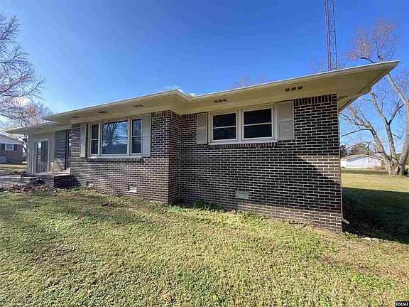 One story brick ranch home located in city limits on end of deadend street. Homes offers 3 bdrm 1.5 bth w 2 Living areas. Eat in Kitchen w appliances. Inside Utility Rm w cabs for great storage. Step down den w Stone FP w insert. Mstr bdrm w 1/2 bth. Detached workshop w 2 garage doors and entry.