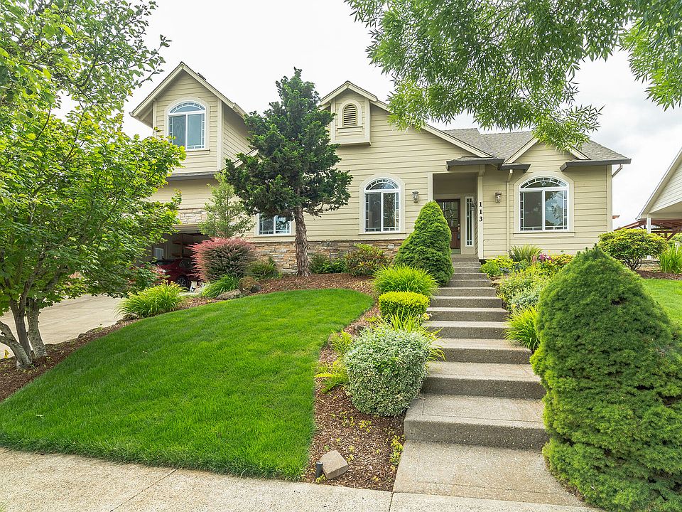 Accepted Offer with Contingencies. Great neighborhood. Vaulted ceilings/formal living room plus great room/den on main could convert to 4th bedroom/2 Master Suites -1 on main, and 1 up. Upper master has sitting room with views to the Abbey, and valley. Stainless appliances replaced in 2016 per seller. Lot backs up to current farmland. Lots of glass providing a light , and bright feeling home.