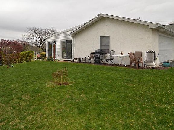 Square footage is for the main level only. The entire lower level is finished which adds about another 1100 square ft to the house. Great property for live in relatives. Main level has large living area, dining area, kitchen, beautiful bright sunroom, 2 bedrooms and an office (could be bedroom). Lower level has large livin/family area with fireplace, dining area, kitchen and 2 bedrooms. There is access from the lower level to the garage. Garage is oversized with storage plus an additional storage shed. Great location for families, street goes into the parking area for admin building plus plenty of green and playground space for children.
