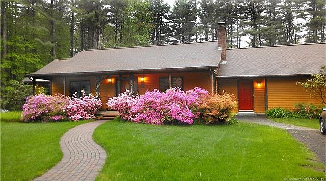 Follow the private drive to this hidden 13 acre gem and fall in love! A full length front porch welcomes you to this 3 or 4 Bedroom Ranch/Horse Property --warm and inviting, freshly painted, refinished wood floors, and a lovely Master Bed and Bath Suite. Enjoy the comfort and convenience of one floor living. Entertaining is a snap using the wing of the home as a home theater and media room. Need an in-law set up instead? A full Bath and separate entrance can help you make it a perfect space for your needs. Have a home based business? You can make this wing your own office or creative studio. The basement is wide open with truss construction allowing for plenty of space for storage and a workshop. There are 3 outbuildings: a tool shed, a larger shed, and a horse barn with 2 stalls, tack room, and enough storage for 300 bales of hay. The Horse Barn has running water and electricity. There are 2 paddocks and pvc vinyl fenced area for horses. Harvestable firewood can be cut on the property, perfect for heating with the wood burning stove. This dynamic home offers many possibilities to suit your needs-- it also shines as a private retreat! Level yard, trails on the property, conveniently located to town center and shopping, minutes away from important commuter routes and Bradley International Airport. This is a unique property, a nature lover's delight--see it today and make it yours!