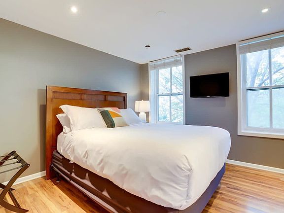 Superbly located on a charming, quiet street in the shadow of the US Capitol, Library of Congress, and the House of Representatives office buildings, this top-floor 1-bedroom, 1-bathroom walk-up apartment offers quintessential Capitol Hill living. It is within easy walking distance of all that Washington, DC has to offer. Fully furnished, this apartment is newly renovated with high-end finishes and features modern furnishings, stainless steel appliances, stone countertops, private HVAC, and an in-unit washer and dryer. The main bedroom has a queen-size bed, the living room has a sofa bed, and there is one queen-size air mattress available upon request. Enjoy a morning coffee on your own outdoor deck, and feel at home in your very own private oasis in the heart of the city. The apartment is immaculately clean and features a fully equipped kitchen, coffee, fresh towels, and bathroom essentials. Enjoy the most comfortable, welcoming linens you have ever slept on, Giga Blast Business Speed Wi-Fi, and free Netflix and streaming cable. The apartment offers self check-in for your convenience. Pets are welcome with a fee of $75 per pet per week. A Pack and Play and/or high chair can be reserved in advance for a $25 rental fee. Several parking options are available, including advanced parking pass or parking space reservations. Please note that neither the property owner nor the apartment shall be held liable for any loss, theft, damage, or injury related to the use of the parking space. The nearby micro-neighborhood of Barracks Row is a must-experience in DC, where vintage storefronts hold oyster houses, pubby bars, and foodie-focused restaurants. By day, the neighborhood buzzes with everyone from senators and Supreme Court justices to law clerks and Capitol Hill staffers. By night, it becomes a focal point for culinary genius, with nationally famous restaurants. Capitol Hill is one of the city's most popular places to live, with 19th-century row houses, a vibrant nightlife, and a dining scene. Tour the U.S. Capitol via its impressive visitors center, and explore the Library of Congress, Folger Shakespeare Library, and the U.S. Botanic Garden. Eastern Market offers a lively weekend bazaar with produce, crafts, and antiques. Smoking of any kind is not permitted anywhere in the interior of the building or within fifty feet of the building, including outdoor spaces. A $500 smoking fee will be charged if the odor of smoke is reported. Parties and events are strictly prohibited, and noise levels exceeding normal levels are grounds for ending your stay. The apartment is equipped with noise monitoring devices and exterior cameras for security. The fireplace is only decorative. The apartment is protected by Truvi, and short-term rental guests will be contacted for verification prior to check-in. House rules must be accepted, and violations can result in immediate termination of your reservation without refund. Certain items should not be flushed or put down drains to avoid plumbing issues, and guests may be charged for any resulting damage. The apartment may require unexpected or scheduled maintenance, and access may be needed with 24-hour written notice. The apartment features Giga Blast Business Speed Wi-Fi, making it remote work-friendly. A laptop computer is not included.