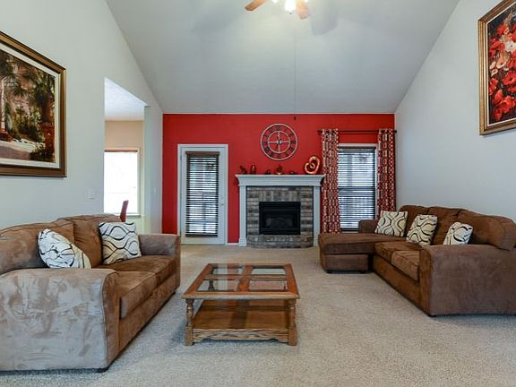 Beautiful home in golf course community with vaulted ceilings and large windows, full finished basement, 5 bedrooms, 3 1 2 baths, 2 fireplaces, 9 ft. ceilings, lovely formal dining room. Living room w fireplace, captivating kitchen w ceramic tile floors and breakfast nook. Spacious Master Suite. Secondary main level bedrooms are on other side of living area Complete living area in lower level with two bedrooms, and baths and large recreational space with fireplace (never operated- sold as-is), and access to beautifully landscaped yard with privacy and multiple deck and Ozark Outdoor living space to gather and enjoy. Remember to enjoy all the amenities of Stonebridge Village: Golf, pool, tennis and More. HOA dues $157.50 monthly. Home is offered with all personal possessions remaining in the home.