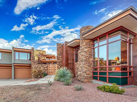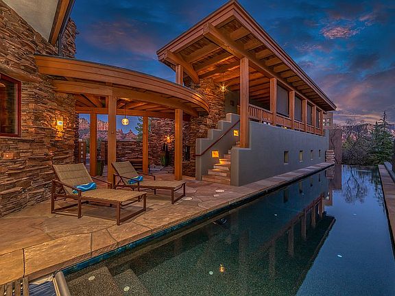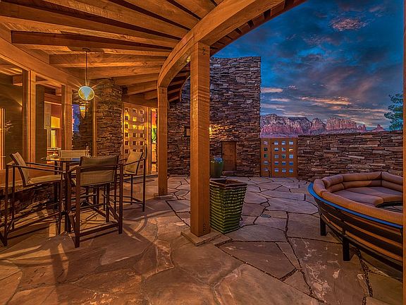 Facts are easy on this home. I can give you lots of facts on this home. But how this home makes you feel, how this home will make your soul sing through it's symphony of textures, stone, steel, and curves, that is something you will have to experience. It's seductive, it's alluring, and is a masterpiece of composition and design that will wrap you in its timeless beauty. The views are extraordinary and framed as individual images at every opportunity in every room. Designed by the Design Group Architectural Firm natural elements are blended together to encompass a minimalistic simple elegance. Flat stonework with horizontal and vertical steel exteriors belong to the earth as naturally as any butte in the distance. The fluid floor plan centers around a gated circular stoned