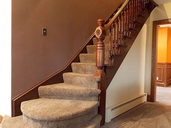 Sharp and extra clean! This 3 bedroom, 2 bathroom, home features two detached garages with 3 garage spaces and extra work space and is situated on 1/2 acre lot. Upgrades include new front door and decorative glass side panels, new windows, new carpet, laminate, & tile, new gas baseboard water heating system, & new roof. The first floor features a family room, dining room, kitchen with breakfast bar & desk area, living room, 3/4 bath with step-in shower, bonus room with closet and french doors. The upper floor features 3 bedrooms, and a full bath with motorized skylight. Laundry and additional work space are in basement and there is 200 amp electric. There are sliders on both sides of the home, one currently has a deck. There is a cement parking pad in front of one of the two garages, and a brick-paver patio.