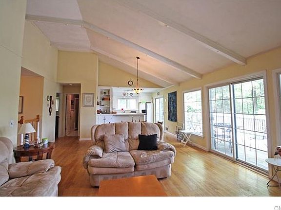 Lovely Private Ranch in Lake Waubeeka. The open main level offers hardwood floors and a spacious Great Room with vaulted ceiling, brick fireplace and wood burning stove. Sunny eat-in kitchen with breakfast bar overlooks the dining area and features sliders to the private back deck with seasonal distant mountain views. 3-4 Bedrooms with 2 up and 1-2 down, each level with its own updated full bath. Laundry and storage in the lower level plus plenty of parking in the newly paved driveway. Enjoy all that Lake Waubeeka has to offer, including lake access and a beautiful private beach.