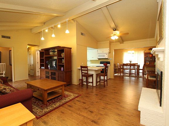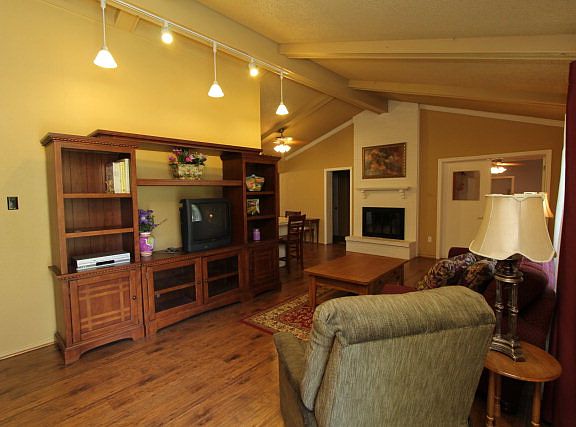 Located on 3 large lots nestled in the trees in one of Cedar Creek Lakes most sought after neighborhoods. Perfect as a weekender or full time residence. Master bedroom down plus another room that could be 4th bedroom or office. House updated since 2007 with laminate wood floors, paint, carpet, electrical, storm windows, cabinets and granite countertop in downstairs bath and more. Large dining area opens to patio and fenced yard. Water well for yard watering. Enclosed garage/workshop. Room to build garage on additional lot. New roof 2012. Community pool with playground, 2 boat launches.
