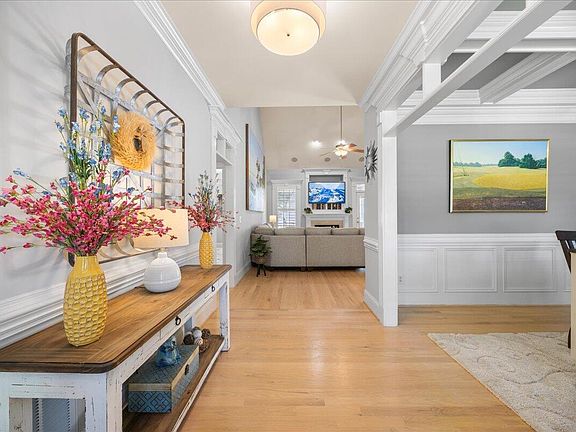 - Bathtub/Shower Combination, Breakfast Bar, Cathedral Ceiling(s), Ceiling Fan(s), Chandelier, Coffered Ceiling(s), Crown Molding, Dining L, Entrance Foyer, Granite Counters, Living/Dining Room Combination, Open Floorplan, Master Downstairs, Room Over Garage, Separate Shower, Walk-In Closet(s), Walk-In Shower, Water Closet, Whirlpool Tub