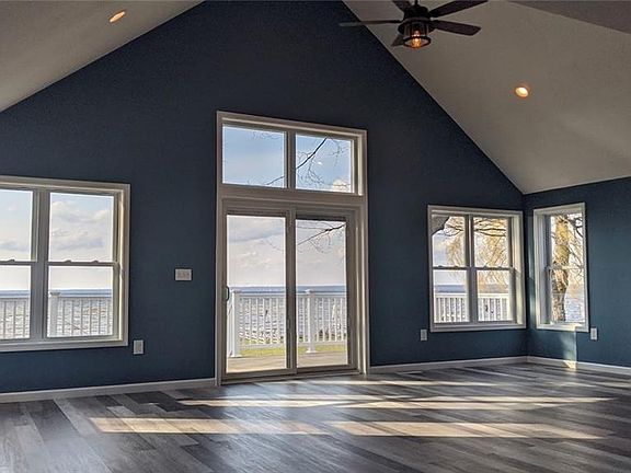 Stunning all new waterfront dream home! Still a little under construction waiting for granite countertops and final grading and seeding of the lawn! But wow I know you can see the perfection here! Open cathedral ceiling great room, 12x24 deck overlooking the lake, first floor master bedroom and perfect finish work and design! Great yard and oversized two story garage make this your year round water front vacation!