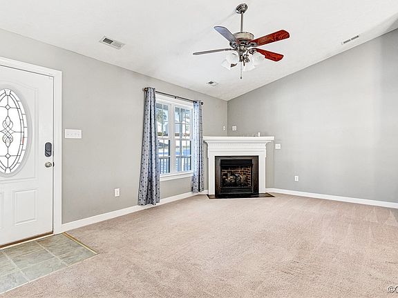 Built in 2012, this low-maintenance home features 3 bedrooms, 2 bathrooms, and an inviting open-concept design. The eat-in kitchen boasts abundant cabinet space, perfect for cooking and entertaining. Relax in the cozy living room with a gas fireplace or retreat to the primary suite for added comfort and privacy. Step outside to a fenced backyard with a very large deck with a gas hookup for your grill—ideal for outdoor gatherings—or enjoy the peaceful views from the generous front porch. Additional highlights include a laundry area, a hot water heater replaced in 2019, a whole-house air filter (filter replaced in December 2024), and recently cleaned air ducts. A SimpliSafe security camera is included for added peace of mind. Don’t miss the opportunity to make this beautiful home your own!