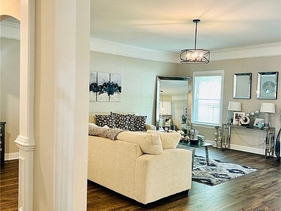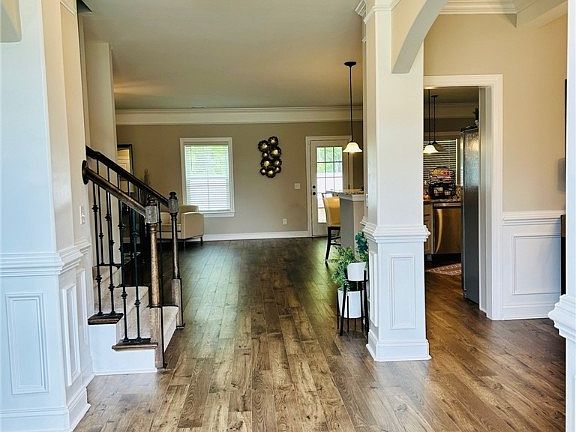 MOVE IN READY! At 3,765 sq. ft. this grand open floor plan features a guest suite downstairs with full bath, kitchen, formal dining room, formal living room/office, and a great room. The upstairs features a vaulted loft, large owner's suite, luxury owner's bath, 3 secondary bedrooms, and a full bath. Selections include tile flooring in all bathrooms, laminate wood flooring in the downstairs common areas, granite counter tops in the kitchen and owners bath, kitchen island with pendant lights, stainless appliances, covered rear porch, two piece crown molding, wainscoting, and coffered ceiling in the dining room. MUST SEE.