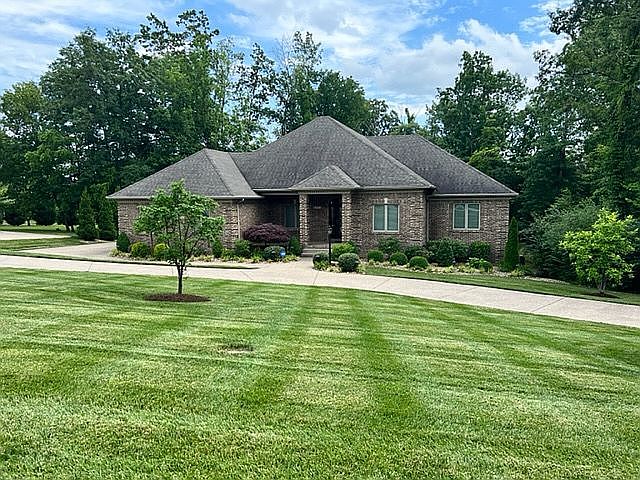 Beautiful brick ranch home in highly sought-after Persimmon Ridge subdivision. The circle drive & front landscaping make this home stand out. The mature trees in the back, make for a very private setting. The lower patio is a perfect area for a hot tub that walks into a large walkout basement. Home has numerous updates inside & out.