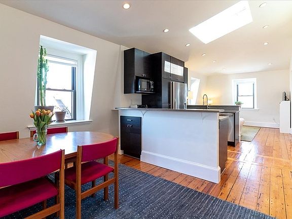 Centrally located JP condo with two beds, 1.5 bathrooms, and a tree top back deck all atop a beautifully restored Mansard Victorian home. Open floor plan with skylights and windows throughout makes this home truly unique. With a beautiful blend of modern updates and restored original detail, this unit has original wide board pine floors but also an open floor plan and stainless steel appliances. With in-unit laundry and an additional office or exercise nook, the unique floor plan allows you to live and work at home, away from it all. The two good sized bedrooms and additional half bathroom make it a great living space for friends or roommates as well. No need to leave but if you did you are right in the middle of it all with just a short distance to the orange line train, southwest corridor, and Centre Street.