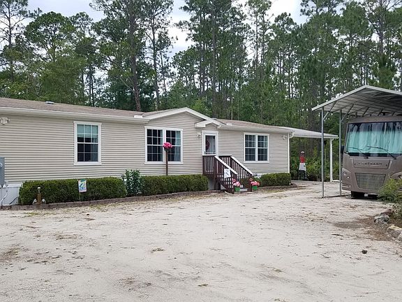 Beautiful country charmer. PALM HARBOR MODEL.! Well appointed, and has been maintained meticulously. Home sits in the center of the 3 lots, which provides privacy. The property has small nature pond. There are 2 storage buildings, currently used as a shop and storage. Also RV covered parking, and 2 30Amp hookups. Nice carport, and beautiful flower garden, and raised veggie beds. Huge Master Bedroom, walk in closet and attached bath with double sinks and separate tub, and large tiled shower. Amazing open floor plan eat in kitchen, large island, dining area, and living room. Large screen room on back porch, and new concrete patio. Owners have done a lot of extras with the landscape, to much to mention, but also able to make it your own. Come see it!