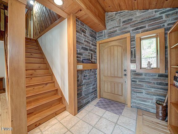 Lake Wallenpaupack Lakefront offering 3 bedrooms plus loft, 2 full baths, open and flowing floor plan, spacious and new lakeside deck plus balcony off master bedroom, modern kitchen overlooking the eating area and more! Master suite offers INCREDIBLE lakeviews, large WIC and new Trex balcony! Major renovation in 2020 took place including new roof, new flooring, new appliances, new furnace & new windows. Walkout basement is perfect for lake-toy storage! Level walk to the water. Watch Wallenpaupack's fireworks right from your dock! Whole house generator & central AC. Fully furnished! It's a beauty! No HOA!!