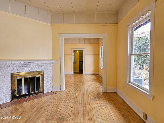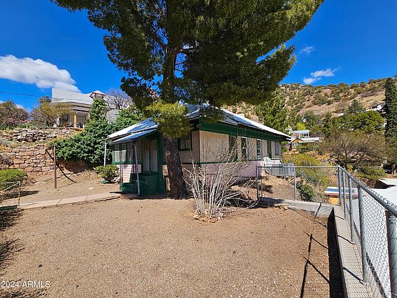 Historic Old Bisbee Craftsman Style Bungalow- 1,300 sq ft., 2 Bedroom with Jack and Jill Bath, situated high up, near the peak of Clawson Ave, just a couple blocks from the center of Downtown Old Bisbee. With great views of B Mountain, surrounding hillsides and beyond. Solidly built in 1910, with many original features intact: Maple flooring, 10' celings, picture rails, and wavy, hand blown glass windows, which fill the house with sunlight. Formal dining room, 2 walk-in closets, pantry, laundry room, newer Central Heat and AC, level front and back yard and garden space.