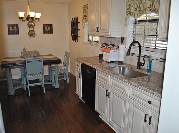 STUNNING HOME WITH 3 BEDROOMS, 2 FULL BATHS Kitchen and master bath have been remodeled w/custom cabinets, granite counter tops, plus a custom tiled shower. Also has a large den, great for entertaining family and friends. The home comes w/0.64 acre w/a detached garage/storage building that has a separate drive. Also included is an above ground pool, fenced in pet area w/dog house.