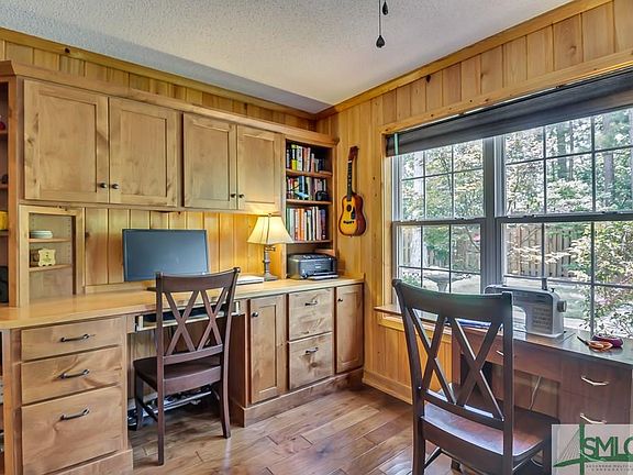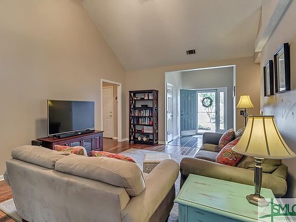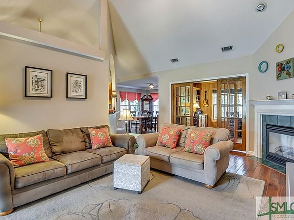 This distinctive brick home has been meticulously maintained and exudes charm and character throughout! You will appreciate the high and vaulted ceilings, the beautiful stained wood finishes and the upscale barn door feature at the entrance to the master bath. The custom tile flooring and backsplash are both beautiful and unique, and there is a beautiful room with stained wood French doors that can serve many functions-office, project room, guest room...the options are endless! This house maximizes every square inch, and is amazingly functional for the way we live today. Do you entertain and enjoy being connected to the family? If so, you will love the flow between the formal living, dining and kitchen areas and sunroom! With its paver patios and gorgeous back yard with flowering shrubs and fruit trees, there is no doubt it is perfectly suited to an indoor/outdoor lifestyle! In addition, it is close to all that Pooler has to offer and is just a very short distance to historic Savannah.