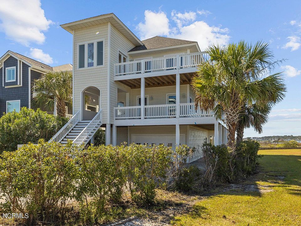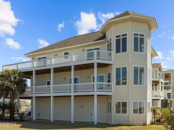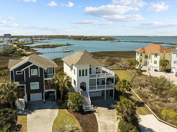 This 4 bedroom 3 bath sound front home has great views of Bogue Sound and Hoop Hole Creek with multiple updates including new carpet, new wood flooring, new paint, new countertops and all new appliances. The easy flowing open floor plan, features a spacious water view great room with vaulted ceilings and kitchen with granite counter tops and new appliances. Opening off the kitchen is a formal dining area with French doors to access and enjoy ocean and sound breezes. The master bedroom and bath and 2 guest bedrooms with a Jack and Jill bath are on the 2nd level. Great outdoor living spaces take advantage of the views and sunsets.There is a huge garage for parking and storing all your beach chairs and toys. Great restaurants and shopping are both near by!