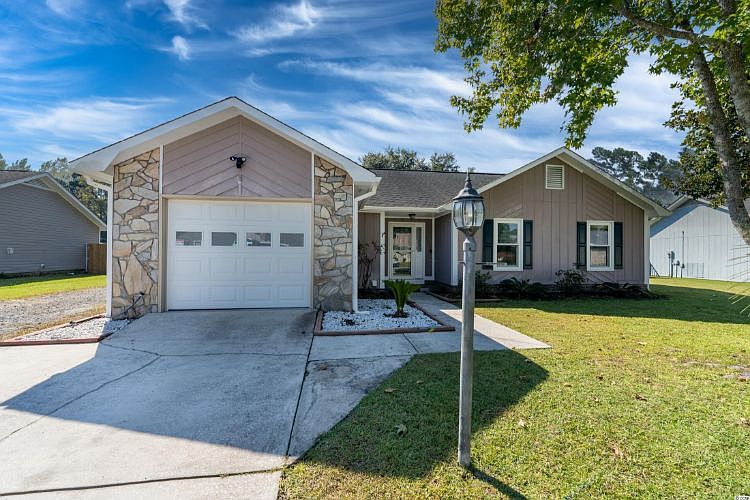 Adorable home in a great location! This charming, single level, 3 bedroom 2 bath home sits in a cul-de-sac and has a little bit of everything to offer. The living room features vaulted ceilings with a beautiful stone fireplace and updated ceiling fan. The kitchen has plenty of cabinet storage, stainless steel Samsung appliances just installed in 2019, updated countertops, and a tile backsplash. Just off the kitchen is a dining area with sliding glass doors that open up onto a large screen porch. The master bedroom has a ceiling fan and en-suite bath. There is also a full sized laundry room, complete with washer and dryer and an attached, 1-car garage. This home sits on one of the largest lots in the community and has tons of outside space! The fully fenced backyard gives you tons of privacy and has an 8x10 shed which could also be used as a workshop, and a new, above ground pool. The large deck just off the screen porch offers additional space for grilling and entertaining, and has recently been stained. Additional features of the home include a full RING security system with flood lights and all new gutters. This one will not last long! Centrally located in Myrtle Beach close to schools, shopping, dining, and area beaches. All measurements are approximate. Buyer and buyers agent responsible for verification of all information.