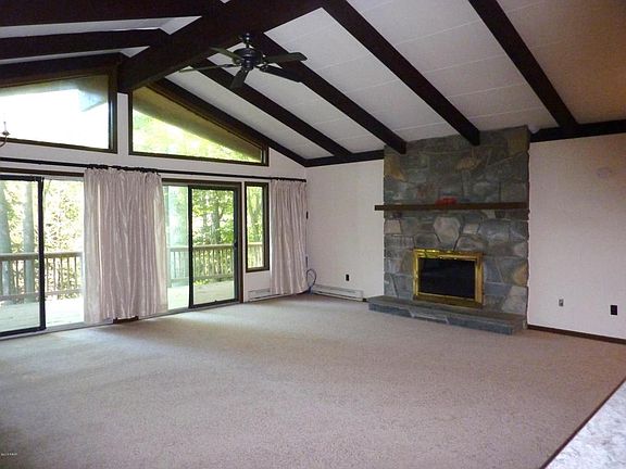 Tanglwood Lakes community Chalet offers 4 Bedrooms, 2 Baths, an open Floor Plan with Stone Fireplace in Living Room. All New Carpet and Flooring and New Bathroom Vanities. Large Deck and Screened in Porch. Lake Wallenpaupack Lake Rights, Community has a Beach Area and Boat Slips on Lake Wallenpaupack, Tennis Courts, Golf Course, Security and More!Excellent location in community.