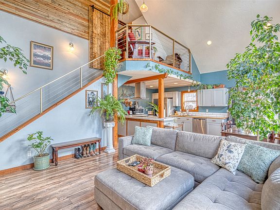 Beautiful home in Happy Valley, Whitefish. With unique and beautiful finishes, this 2-bedroom, 2-bathroom home offers a warm and inviting atmosphere and finishes add character and style to the home. The large bedroom on the main floor provides convenience and comfort, while the primary in the loft space adds an element of luxury and privacy. Enjoy your favorite beverage overlooking Badrock and the Columbia Range upstairs on your private balcony. Situated on almost half an acre, there's ample room to for recreational vehicles or outdoor gear to help you enjoy all Northwest Montana has to offer. A portion of the lot is fenced for your four (or two) legged friends with the convenience of a double gate to pull in your RV's and utilize your private septic. Text/call Nikki Marengo 406-212-8507 or your real estate professional.