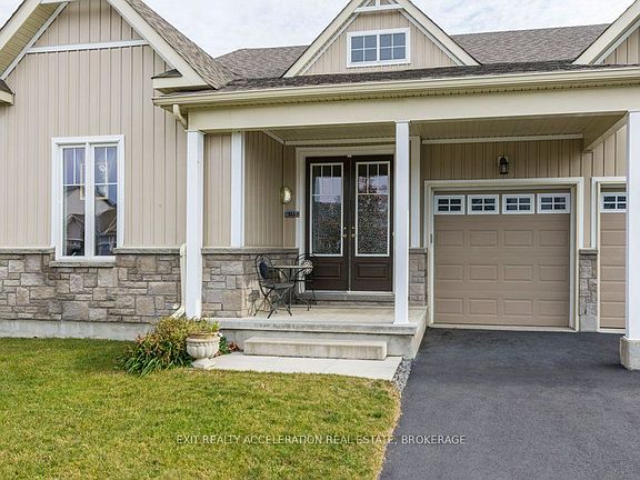 Quick closing available on this golf course community home!! Nestled within the prestigious Loyalist Lifestyle Community, this stunning 3-bedroom, 2.5-bathroom bungalow offers a rare combination of modern sophistication and serene golf course living. Spanning 2,050 sq ft, this meticulously maintained, move-in-ready home was thoughtfully designed for comfort and style, all on one level. Built just six years ago, this former model home showcases numerous builder upgrades, ensuring every detail is crafted to perfection. From the moment you enter, the spacious foyer welcomes you into an open-concept living space including a great room that has soaring 16-ft ceilings and windows that span the full height. Natural light fills the home with 9ft ceilings, highlighting the seamless flow between the living room with gas fireplace, dining, and kitchen areas. Custom blinds provide plenty of privacy. The picturesque backyard overlooks the 17th hole at the Loyalist Golf & Country Club, creating a tranquil retreat for relaxation or entertaining. This home isn't just a residence; its a lifestyle. As a part of the Loyalist community, you'll enjoy exclusive access to a range of amenities, including a clubhouse with billiards, a fitness center, tennis courts with pickle ball, a library, a restaurant, and a members' lounge. During the warmer months, take advantage of the outdoor pool and hot tub for ultimate leisure. Whether you're an avid golfer, an entertainer, or simply seeking a peaceful and vibrant community, this home delivers it all. The $20,000 + HST initiation fee to the "Country Club Community" has already been paid and transfers with the sale of the home (membership is optional)! Don't miss the chance to make this exceptional property your own and experience the Loyalist lifestyle at its finest.
