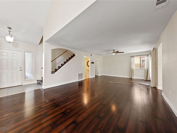 Located in the highly desirable Green Valley area with a LOW HOA, this charming 3-bedroom, 2.5-bath home offers a perfect blend of modern upgrades & convenience. Upgraded finishes w/laminate flooring downstairs, create a seamless flow between the living & dining areas. Upstairs, the master suite offers a peaceful retreat, while two additional bedrooms provide plenty of space for family, guests, or a home office. Plenty of parking and space in this two car garage. The bathrooms are beautifully appointed with modern fixtures and finishes. Outside, enjoy a low-maintenance yard with plenty of space for relaxing or entertaining. This home is ideally situated near The District, Green Valley Ranch Casino, parks, shopping, dining, & convienent access to the 215 freeway. Whether you're enjoying a night out, running errands, or commuting, you’re just minutes away from everything you need. Don’t miss out on this incredible opportunity and schedule your showing today!