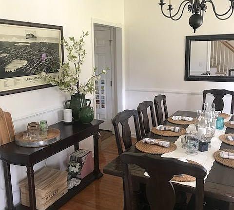THREE finished floors! This roomy home, less that 10 minutes from North Topsail Beach, offers three finished levels just under 3300 sqft. All 3 floors include individual climate control. Hardwood floors in the living room and dining room. Tile flooring in the foyer, kitchen, bathrooms and laundry. The living/great room, master bedroom, master bath and garage are all more spacious than the average and offer plenty of possibility to use the space. The master bathroom has a double vanity, a jetted garden tub and a separate shower with dual sinks. There is a wood-burning fireplace in the living room and bay window in breakfast nook. A spacious bonus room on the 2nd floor makes a 4th bedroom or recreational area. The entire 3rd floor is a finished bonus area ideal for use as office space, a craft area, storage or an extra bedroom. Large fenced in backyard. The established neighborhood of Creeks Edge offers a dock on Turkey Creek with kayak/canoe launch and small pavilion. For easy access to the ocean, a public use boat ramp is just over a mile away at the junction of Turkey Creek and the Intracoastal Waterway. Located minutes from Stone Bay & Camp Lejeune back gate, it is less than a 10 minute drive to the Beach. 35 miles to Wilmington and a 20 miles to Jacksonville. No smoking on the premises.