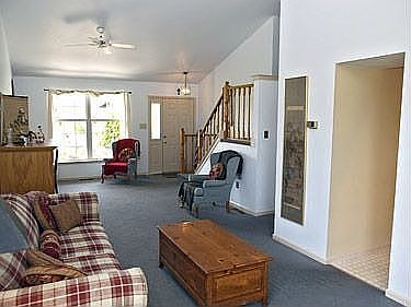 Beautiful 2-story contemporary situated on one-acre homesite. Spacious living room w/vaulted ceiling and gas fireplace w/mantle. Recessed lighting in kitchen with breakfast nook next to dining room. Powder room & laundry area also on first floor. Second floor has three bedrooms and two full baths. Double doors open to the spacious main bedroom with two closets and adjacent full bath. Partially finished basement w/propane stove, two phone lines and plenty of sunlight to make this area perfect for office space. There's a separate room with heat, carpeting and shelving that can be used as the 4th bedroom. Newly upgraded security system w/motion sensors and two keypads, and an attached 2-car garage. Private fenced back yard w/mature trees and large wooden summer retreat playhouse. Medium sized shed is located at the back of the property. Underground utilities. Not a drive by! Home is much bigger inside than it looks from the road.