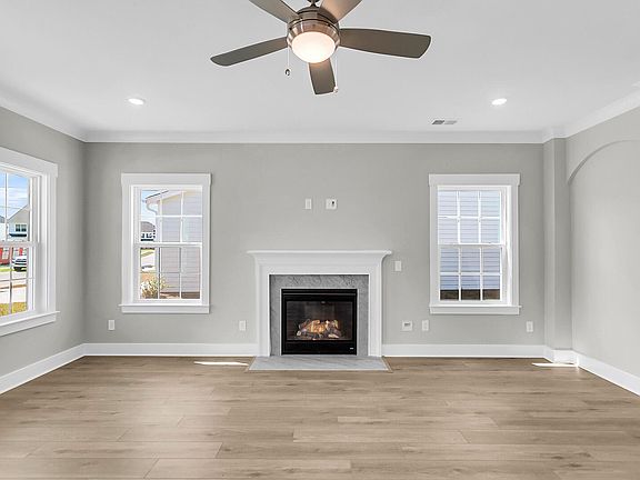 Quick Move In. This amazing Langford plan sits on an incredible private homesite, nestled in the back of the community, and features sunroom, gourmet kitchen, first floor guest suite and so much more. The foyer opens to the large family room and arched openings leads to the kitchen and dining area. Three upstairs secondary bedrooms all feature large closets. The primary suite features a sitting area, large walk-in closet and a primary bath with a water closet and tiled walk in shower. Options include a fireplace in the family room, sunroom and loft.
