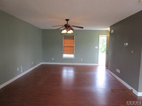 3 bedroom, 2 bath plus FROG on 1.39 acres in Camden Crossing located on a cul-de-sac lot. Laminate flooring in living, dining, kitchen and utility room, Carpet in the bedrooms. Galley style kitchen with appliances. Extra large utility room with instant hot water heater. Big fenced backyard with deck and large storage/workshop building with electric and small shed. Home needs lots of TLC. Great location for commuters to VA or OBX.