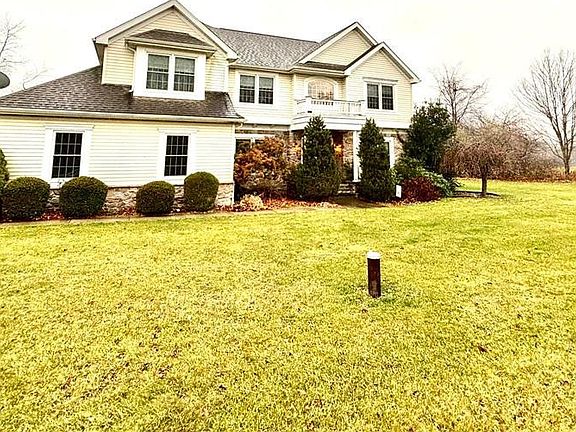 This 3732 sqft two story colonial offers 4 bedrooms 3 full baths and is situated on a private 1 acre lot. The home offers 9ft ceilings on the first floor, a gorgeous kitchen with a large center island, stainless steel appliances, din rm, two story family room with a propane fire place. There is a first floor office which could be a bedroom, full bath on the first floor, living rm and a first floor laundry. The second floor consists of a Master bedroom suite with a nice size walk in closet, the master bath offers double bowl sinks, jacuzzi tub, a separate shower, there are 3 generous sized bedrooms, a full bath and attic storage. There is a full walk out basement that could easily be finished. The home has a solar system that is owned with an average electric bill of $300 a month.