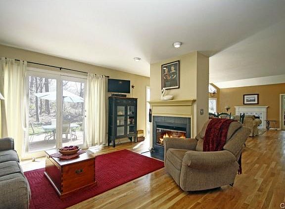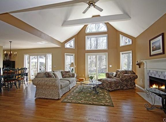 This exceptional Contemporary Cape is waiting for a new owner with imagination and creative flair. Imagine this peaceful paradise with your special touches. Offering open space living highlighted by vaulted and beamed ceilings. Two double sided fireplaces compliment the first floor master suite and the family room. Polished hardwoods, granite counters are highlighted by multiple french doors showing off the wonderful level back yard and spacious deck. Great for pets and gardening. This home is ready to move into. Abundant storage and finished basement with nice workshop area. New roof and hard wired for generator. Home warranty Close to x 9 , I 84 so you will have more time to spend enjoying your new home instead of commuting to it.