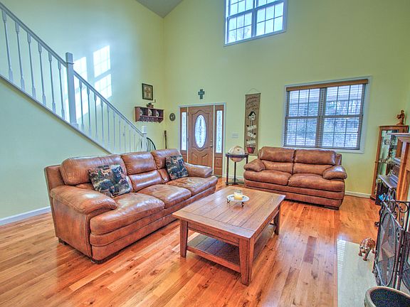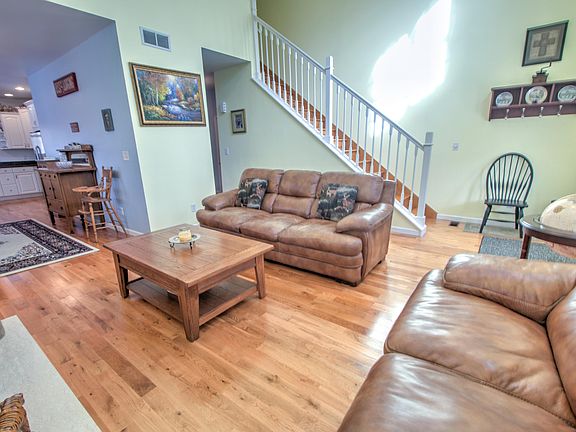 Tanglwood Lakes 4 bedroom, 2.5 bath custom built cape cod. This spacious home features a 1st floor master suite w/Jacuzzi tub/large separate shower & private deck, hardwood floors, propane FP, cathedral ceilings, SS appliances, custom pantry, extensive closets & storage, private backyard, finished lower level family room, central A/C, 2+ car garage & generator. Walk out the French doors to a wrap-around covered porch or roast marshmallows in the fire pit. Home is on a quiet street & walking distance to golf, & tennis.