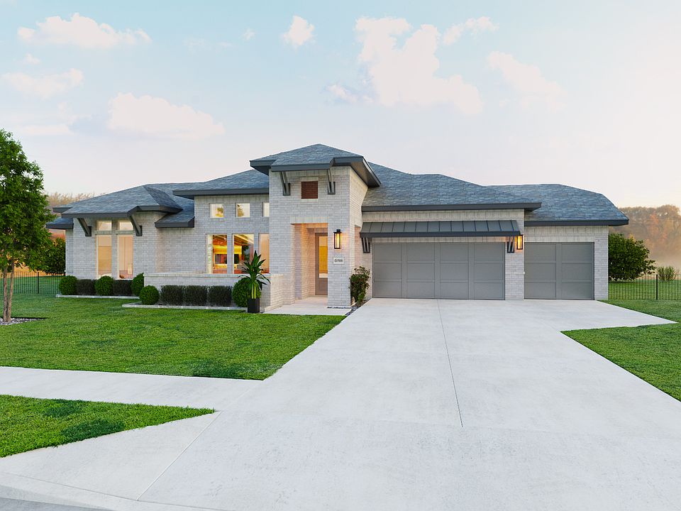 Discover refined living in this 3,459 sq. ft. one-story home, nestled within a master-planned golf course community. Meticulously crafted, this residence seamlessly blends luxury with natural beauty, featuring a sophisticated exterior design and an expansive 3-car garage. The open-concept layout, highlighted by high ceilings, creates a spacious and inviting atmosphere. With four well-appointed bedrooms, including a lavish master suite, and three full bathrooms plus a powder room, every detail is finished to the highest standards.