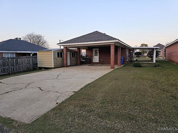 Welcome to Pecan Ridge in the Daniel Pratt school district; just minutes away from lots of shopping, restaurants, and the interstate! This cute 3 bedroom, 2 bath home is nestled on the corner of a quiet cul-de-sac and has back-alley access to private parking under an attached 2-car carport. Plus, the driveway is double-wide for additional parking. Also in the backyard is an 8' X 14' shed. The left side of the home has a covered patio. The spacious living room boasts a tray ceiling and fireplace. Kitchen is equipped with a refrigerator, microwave, dishwasher, and brand-new oven. There's a small laundry room just off the kitchen. Tile and LVP flooring throughout the house. All new roof shingles and a new attic vent fan were installed on 22 Nov 2024.
