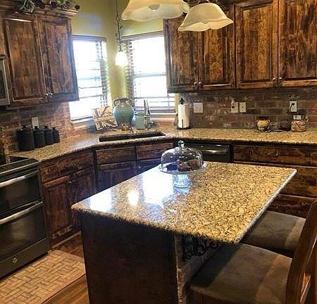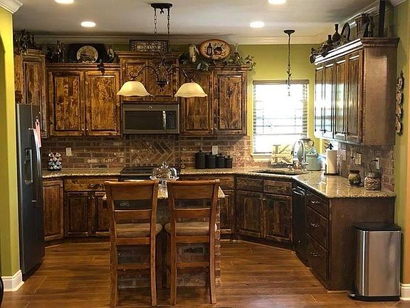 3 Bedroom 2-1/2 Bath,Open Floor Plan Brick Home with 2 Car Carport on 3.81 acres.This Home was Built in 2015. This Custom Built Home has Custom Cabinets in the kitchen and Granite Counter tops, The Appliances include Refrigerator,Built in Microwave,Dishwasher, and Garbage Disposal. There is a Brick Wood burning Fireplace in the Living Room. The Floors are etched concrete and look like Real Wood and Carpet in the Bedrooms. It also has a Covered Front and back Porch.The Home has Seamless Gutters around the house. There is a 1 year old 24x40 shop, 22x24 tractor shed, and dog pens.